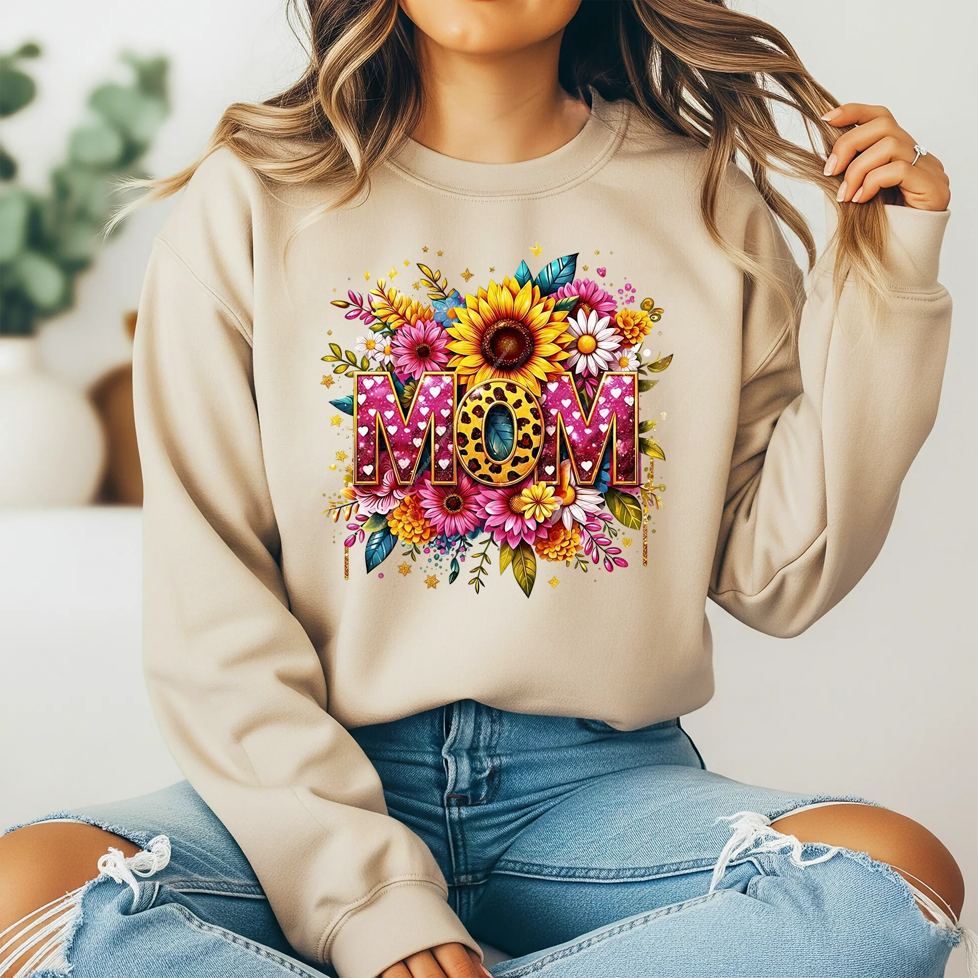 Celebrate motherhood with our stunning Floral Mama PNG Sublimation file. This design is more than a simple graphic. Indeed, it acts as a vibrant tribute to moms everywhere. It captures attention instantly. The bold 3D “MOM” typography features pink glitter and leopard print mom accents. A lush arrangement of sunflowers and gerbera daisies frames the text.